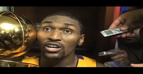 MVP selon nous du Game 7 avec ses 20 pts, 5 rbd et 5 ints, Ron Artest a enflammé l’après-match avec une conférence de presse surréaliste, puis avec un véritable show dans les vestiaires (“Qui veut embrasser la coupe ?”).