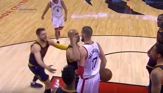 Entre le coup de coude de Bismack Biyombo sur Kevin Love et l'accrochage entre Richard Jefferson et Jonas Valanciunas, l'ambiance était tendue en première mi-temps entre les Cavs et les Raptors.