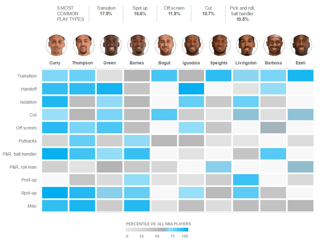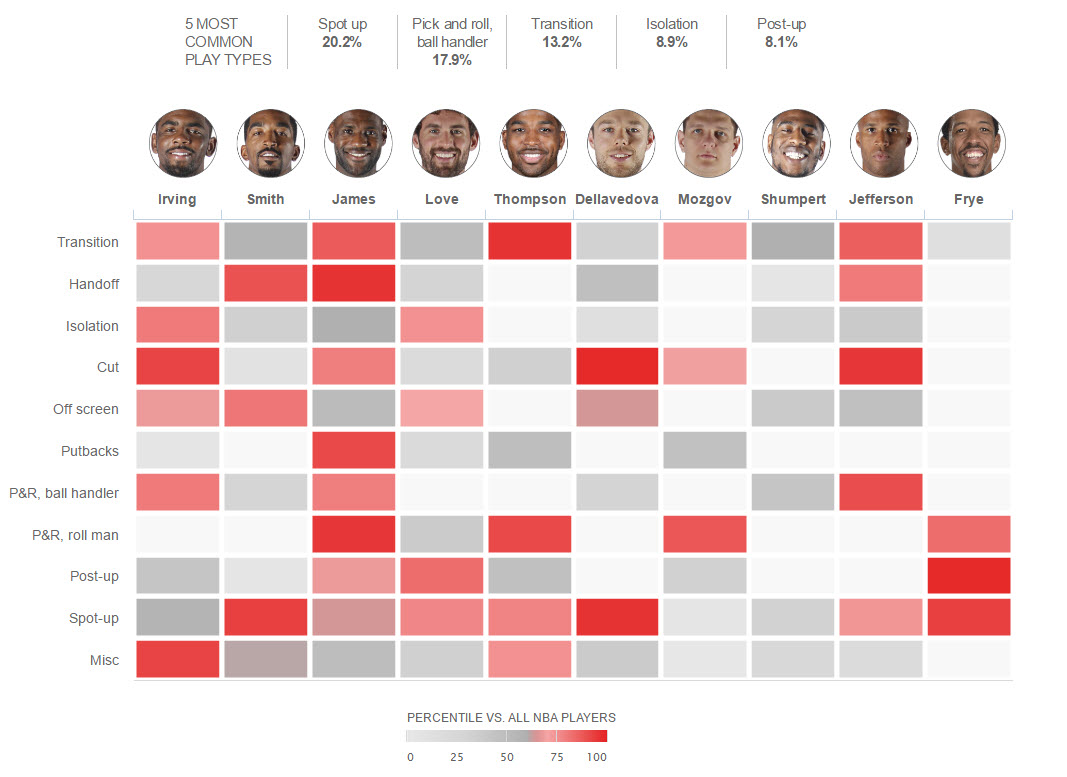 17.5% : pourcentage des actions jouées en transition par les Warriors, contre 8.9% en isolation pour les Cavs.