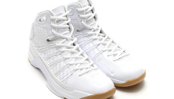 Pour contraster un peu avec le blanc de la tige, les designers ont opté pour une gum sole. Pas encore de date de sortie annoncée pour cette Hyperdunk “Lux.”