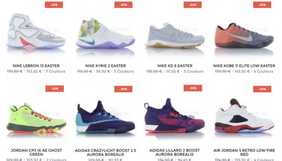 Parmi les meilleurs deals disponibles pour le moment, on trouve notamment chez Nike les éditions Easter de leurs modèles signatures sorties il y a quelques mois à peine. C’est ainsi que les Lebron 13 et surtout les Kobe 11 initialement vendues 180 euros voient leurs tarifs passer à 115 euros.