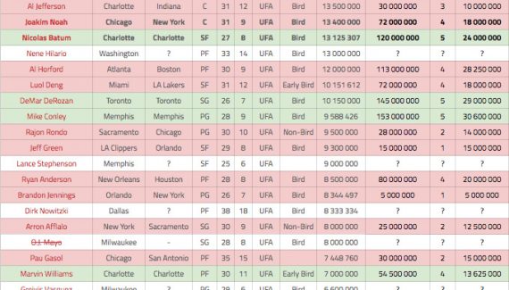 Du coup, il est utile de faire un nouveau point sur toutes les signatures de cette free agency, histoire de voir quels joueurs sont encore disponibles. Ça devrait en tout cas beaucoup s’agiter aujourd’hui et demain, le choix de Kevin Durant ayant pour l’instant bloqué un bon nombre de signatures. Désormais, le paysage est plus clair et tout devrait aller très vite.