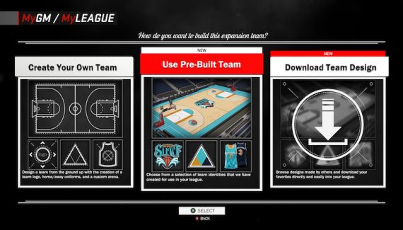 Comme son nom l’indique, il s’agit d’un mode permettant d’ajouter jusqu’à six franchises, avec le design de son choix. On pourra aussi créer une league, toujours jusqu’à 36 équipes, mélangeant les équipes actuelles, des équipes créées par vos soins, des équipes classiques, et même des équipes d’Euroleague…
