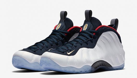Apparue en 1997 au lendemain des Jeux olympiques d’Atlanta, mais aujourd’hui très rare sur les parquets, la Nike Air Foamposite One a le droit à son édition “olympique” avec les couleurs du drapeau américain et des accents dorés renvoyant à la médaille d’or visée par Team USA. On retrouve aussi le logo “1 cent” présent sur le modèle signature de Penny Hardaway.