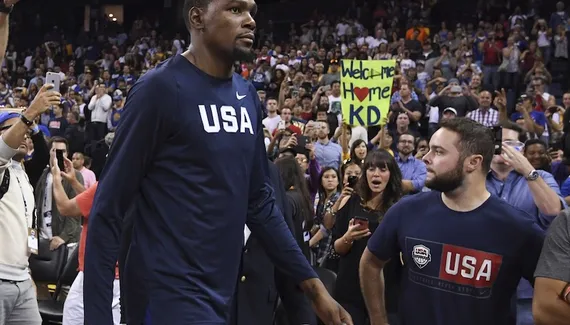 Hasard du calendrier du Team USA, trois semaines après l'annonce de sa décision de rejoindre Golden State, Kevin Durant avait l'occasion de fouler le parquet de l'Oracle Arena. Ovationné par le public avant et pendant la rencontre, le néo-Warrior a été touché par l'accueil qu'il a reçu à Oakland après avoir été hué à Los Angeles.