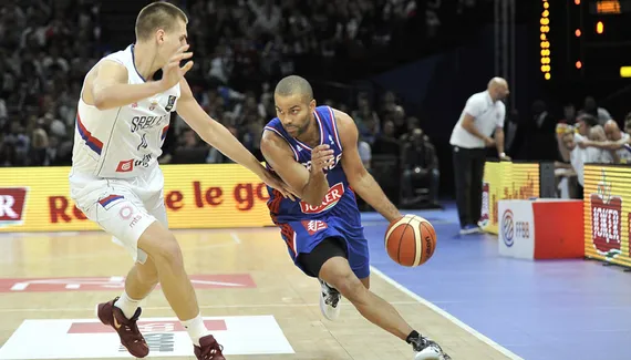 Effectif : Tony Parker, Nando De Colo, Nicolas Batum, Boris Diaw, Rudy Gobert, Thomas Heurtel, Antoine Diot, Mickaël Gelabale, Charles Kahudi, Florent Piétrus, Joffrey Lauvergne, Kim Tillie