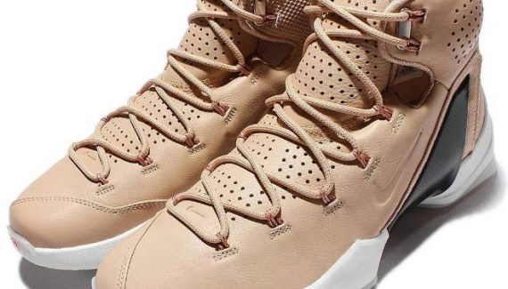 La gamme de la ligne LeBron chez Nike s’étend encore avec une version Elite très surprenante de la LeBron 13. En cuir marron clair type “Tan Vachetta”, en partie perforée sur la tige et la languette, accompagnée de finitions soignées à l’image des oeillets métalliques, cette LeBron 13 Elite LB EP présente un visage massif et acéré, non sans rappeler la gueule d’un squale.