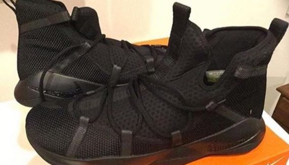 Comme souvent avec les modèles du quadruple MVP, la silhouette ne va pas faire l’unanimité. Dénichée dans un coloris blackout par @SneakerReporter, la chaussure se présente comme un chausson recouvert de lacets. Les sangles reliées aux lacets évoquent un peu la Air Jordan 11.