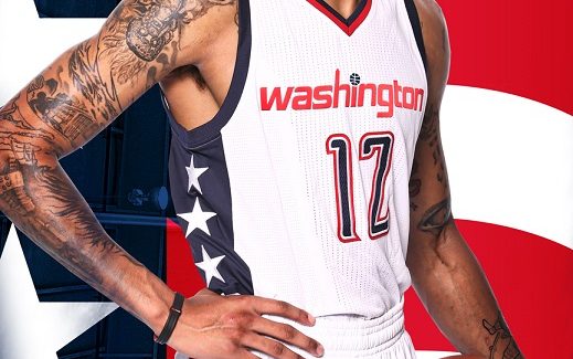 A l’instar des Spurs, les Wizards porteront désormais un maillot en hommage aux militaires américains. Cet “uniforme” étoilé sera porté à six reprises cette année (une fois par mois), et chacune des rencontres sera dédiée à un corps militaire (Air Force, Marines, etc.).