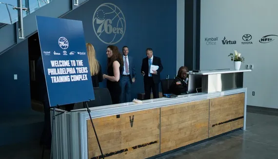 Les coéquipiers de Ben Simmons s’entraînent ainsi dans un espace dernier cri, dans un quartier de Camden, et le détail qui tue se trouve à l’entrée de ce complexe sportif. On y trouve ainsi un comptoir d’accueil fabriqué avec des lattes du parquet de la salle où Wilt Chamberlain avait inscrit 100 points. Il s’agissait à l’époque de l’Hershey Sports Arena.
