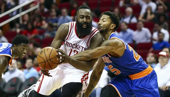/https%3A%2F%2Fwww.basketusa.com%2Fapp%2Fuploads%2F2016%2F10%2Fharden-rose.jpg) En annonçant qu'il allait faire de James Harden son meneur principal, Mike D'Antoni a déjà posé sa patte sur le jeu des Rockets. Et le moins qu'on puisse dire, c'est que la formule a marché pour ce second match de la présaison. Houston s'est baladé de bout en bout et a carrément atomisé les Knicks (130-103) derrière un James Harden (28 points, 11 passes, 6 rebonds) brûlant en première mi-temps. Et c'est ensuite Ryan Anderson qui a porté l'estocade avec 26 points et 7 rebonds dont un succulent 7/13 à trois points et 17 points rien que dans le troisième quart !