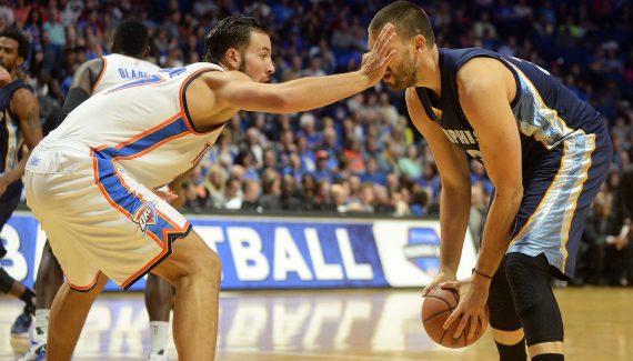 Privé de Steven Adams, Enes Kanter, Andre Roberson et Ronnie Price, le Thunder s’est largement incliné contre Memphis : 110-94. Malgré l’écart, il y a eu de belles choses de part et d’autre telle que l’adresse à trois-points des hommes de Billy Donovan, auteurs d’un soyeux 14/21 à longue distance cette nuit (8/11 à la mi-temps). Entachée par la joute entre Russell Westbrook (17 pts, 4 pds en seulement 15 min) et Marc Gasol, la rencontre fut néanmoins désastreuse pour Oklahoma City en terme de concentration et de contrôle du ballon : leurs 28 balles perdues ont allègrement nourri Mike Conley (19 pts, 7 pds) et ses coéquipiers.