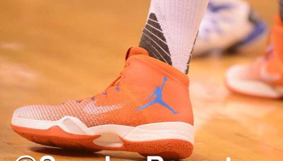 Dimanche soir, contre les Timberwolves, le meneur du Thunder a joué avec une chaussure qui mélangeait la semelle de la Air Jordan XXX et la tige de la Air Jordan XXX1. C’est en tout cas ce que supposent nos confrères de Sneakernews.