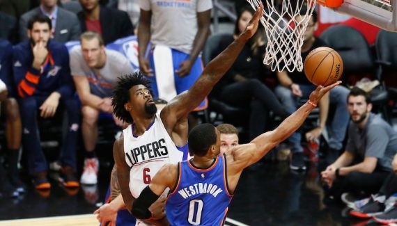 Joffrey Lauvergne se distingue en deuxième quart, altruiste et bien placé. Le visage de Chris Paul l’était beaucoup moins quand il a pris un vieux coup de coude (involontaire) de Nick Collison en fin de période… Le meneur des Clippers est déjà aux vestiaires quand son équipe le rejoint en déficit (49-41) à la pause. Le nouvel arrivant, Jerami Grant, s’est signalé d’un gros alley oop avec Westbrook.
