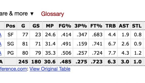 | 2015-16 | MIL | 80 | 35:17 | 50.6 | 25.7 | 72.4 | 1.4 | 6.2 | 7.7 | 4.3 | 3.2 | 1.2 | 2.6 | 1.4 | 16.9 |