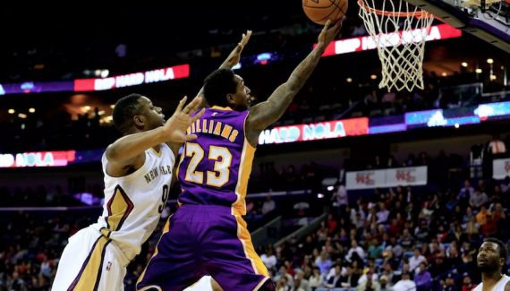 Lou Williams prend alors le relai de son compère en marquant les neuf premiers points des Lakers dans le deuxième quart temps. C’est Alexis Ajinca, avec 6 points et 5 rebonds, qui aide La Nouvelle-Orléans à réagir mais L.A. insiste. Un nouveau 3-point de Nick Young leur donne huit longueurs d’avance (46-38).