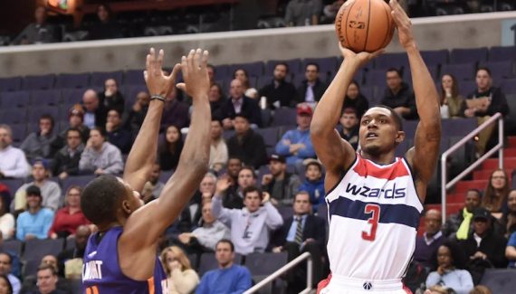 L’alter ego de John Wall vient donc de signer, et pour la première fois de sa carrière, deux rencontres de suite à plus de 30 points, mais c’est bien son record de 42 points (14/22 au shoot, 5/10 à 3-pts) qu’il faudra retenir, surtout qu’il a été nécessaire pour écarter les Suns (106-101).