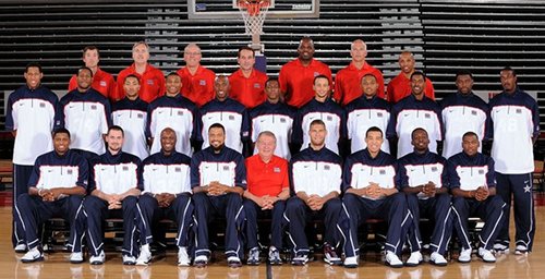 Côté blanc : Kevin Durant, Andre Iguodala, Eric Gordon, Derrick Rose, Stephen Curry, Tyson Chandler, Danny Granger, Gerald Wallace et Lamar Odom.