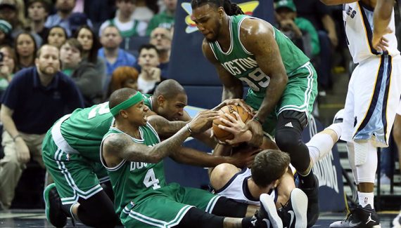 Comme le montre Half Court Hoops, Boston a ainsi une séquence de jeu où deux joueurs, un arrière et un pivot, sont en tête de raquette. Le premier remonte vers son meneur et s’écarte tandis que le second vient immédiatement porter un écran.