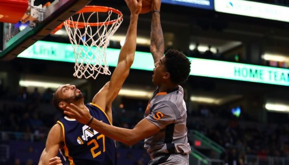 Alex Len choisit lui le début du troisième quart pour inscrire deux de ses trois paniers de la soirée. Phoenix prend alors rapidement 10 pts d’avance. En lay up aérien sur un alley oop de Bledsoe, Booker maintient l’écart (70-62) avant que le Jazz ne grapille et revienne à -1 en fin de période grâce notamment à Joe Ingles (11 pts) et Raul Neto. Neuf minutes plus tard, profitant de l’absence de Tyson Chandler, Rudy Gobert continue son festival et replace Utah aux commandes à trois minutes de la fin. Sur un rebond offensif conclu en dunk d’abord et un 2+1 ensuite.