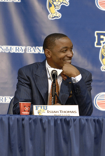 Entraîneur de Florida International, Thomas peut dans ce costume là contrevenir aux lois qui comme consultant l’en empêchent. Bonjour le mic mac ! Nous sommes curieux de voir quelle parade les Knicks vont sortir de leur chapeau. Sauf miracle, l’ancien bad boy devra lâcher son poste NCAA.