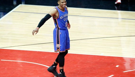 Avec un 23e triple double cette saison (27 points, 12 rebonds et 10 passes), le meneur du Thunder enfile le 60e de sa carrière, dépassant ainsi Larry Bird, bloqué à 59 triple double.