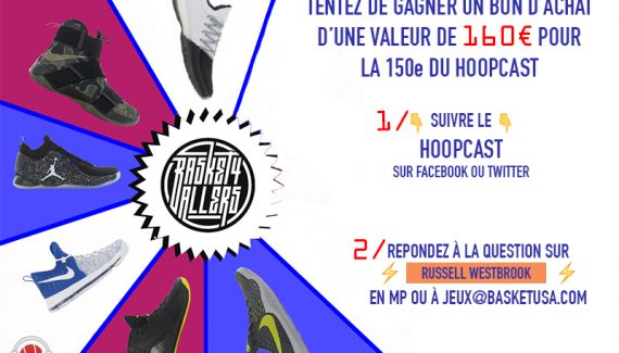 À l’occasion de sa 150e émission, le Hoopcast vous fait gagner un bon d’achat d’une valeur de 160 euros chez notre partenaire Basket4Ballers ! De quoi s’acheter pratiquement n’importe quelle paire de chaussures récentes (Harden, Kobe A.D, Kyrie 3, KD9…), mais aussi des ballons ou encore des vêtements basket, comme lifestyle.