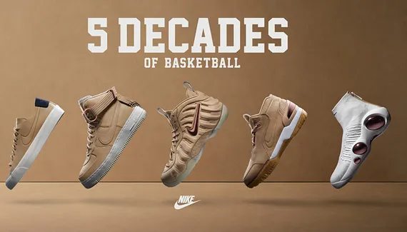 Le temps passe vite sur les parquets, et les chaussures évoluent encore plus vite. Pour fêter cinq décennies passées dans le basket, Nike a décidé de sortir une collection qui donne une touche luxueuse à cinq silhouettes emblématiques.