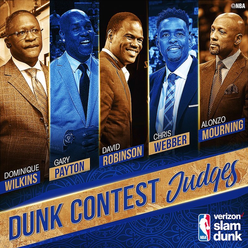 Pour juger les prestations des quatre candidats, un jury d’exception avec un ancien vainqueur (Dominique Wilkins) épaulé de superstars des années 90 : David Robinson, Gary Payton, Alonzo Mourning et Chris Webber.