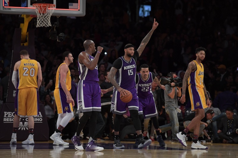 En cette soirée de la Saint-Valentin, les Kings et les Lakers nous ont offert un tango à couper le souffle avec comme protagonistes le couple détonant DeMarcus Cousins – Lou Williams. Auteur des dix derniers points de son équipe, Cousins (40 points, 12 rebonds, 8 passes) a fini par venir à bout des efforts de Lou Williams (29 points et 5 passes), auteur de 19 points dans le dernier quart temps. Mais il manquera le tir de la gagne au buzzer (97-96). C’est la quatrième victoire de suite pour Sacramento.