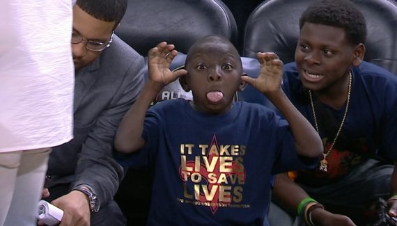 Il s’appelle Jarius Robertson. Il a 14 ans, et il souffre d’atrésie biliaire, une grave maladie du foie. Dans l’attente d’une greffe, ce jeune fan, très connu à la Nouvelle Orléans, s’est invité sur le parquet lors du Celebrity Game, et son panier décroche la première place. Avec la grimace en plus.