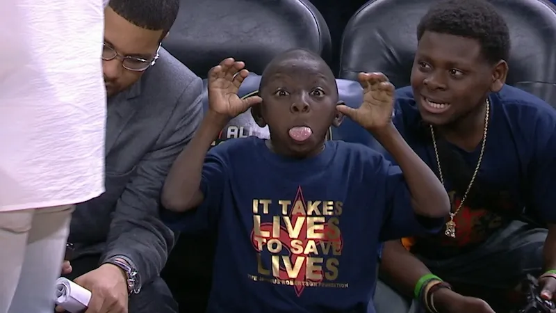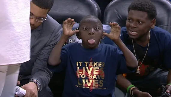 Il s'appelle Jarius Robertson. Il a 14 ans, et il souffre d'atrésie biliaire, une grave maladie du foie. Dans l'attente d'une greffe, ce jeune fan, très connu à la Nouvelle Orléans, s'est invité sur le parquet lors du Celebrity Game, et son panier décroche la première place. Avec la grimace en plus.