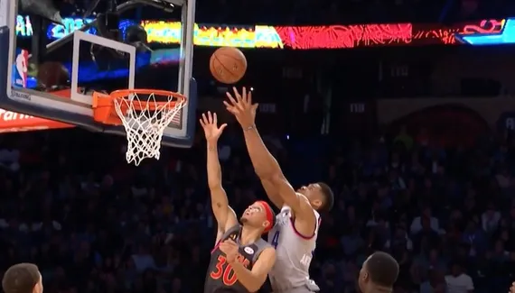 Résultat, Stephen Curry préfère se coucher au sol plutôt que d'être postérizé !