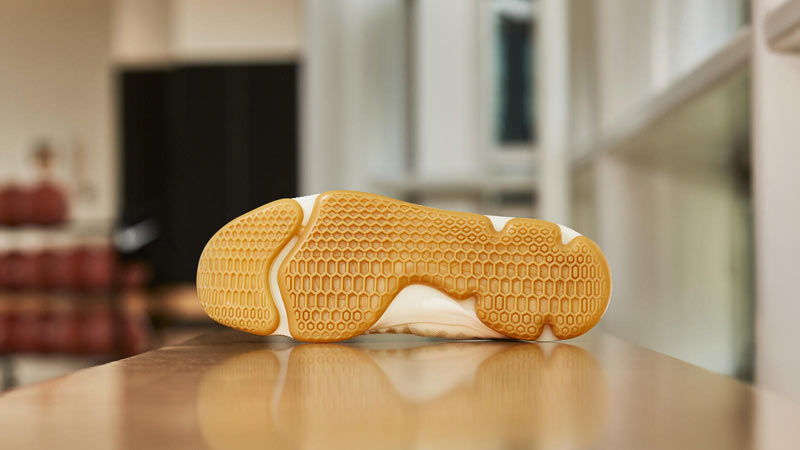 Sur une base blanche, la marque a fait sobre, avec une virgule “burnt orange” et une gum sole de très bon ton.