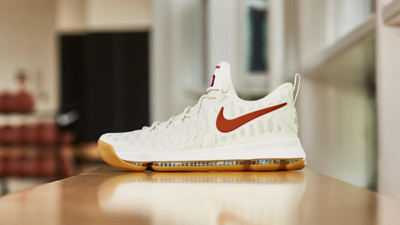 Chaque année, Nike imagine un coloris “Texas” pour la chaussure de Kevin Durant. Jusque-là, les joueurs de la fac étaient les seuls à en bénéficier. Mais cela va changer, puisque la marque vient d’avoir la bonne idée de commercialiser la KD9 dédiée aux Longhorns.