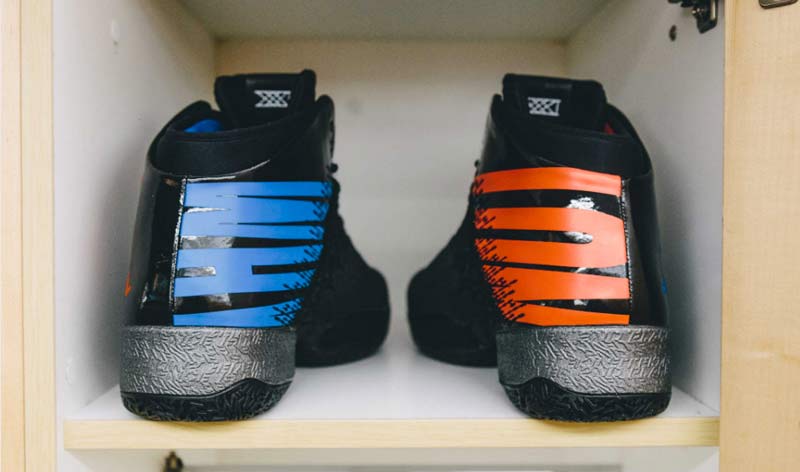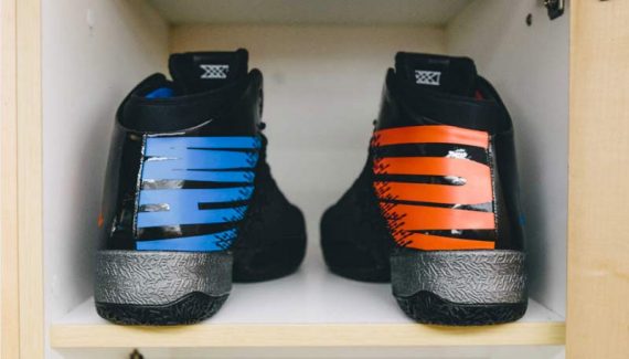 D’abord parce qu’il est le seul à porter une Air Jordan 30.5, qui reprend la tige de la Air Jordan XXX1, et la semelle de la XXX. Sur cet hybride, la marque a ensuite ajouté une robe exclusive, qui reprend le “Why Not ?” utilisé depuis plusieurs années par Jordan pour les coloris dédiés au meneur d’OKC.
