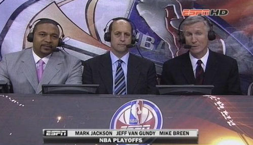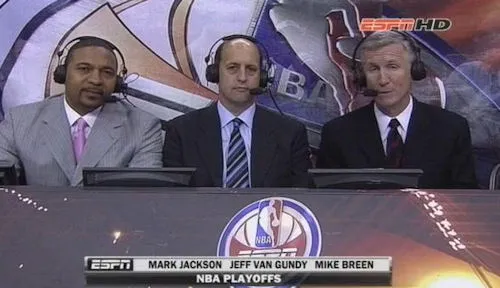 Aujourd’hui, en NBA, on compte 4 grands réseaux. Tout d’abord, ESPN/ABC avec le trio indéboulonnable Mike Breen – Jeff Van Gundy – Mark Jackson, ces deux derniers étant des consultants.