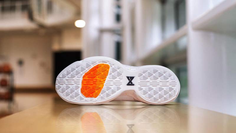 Du blanc, beaucoup de blanc, avec virgule qui reprend les couleurs des Pacers, tout comme les petites éclaboussures présentes sur la semelle.