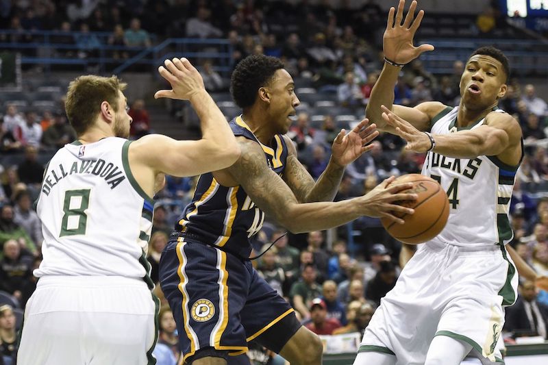 Titularisé par Jason Kidd, qui doit faire sans Mirza Teletovic et Malcolm Brogdon (en plus de Jabari Parker et Michael Beasley), Thon Maker n’attend pas cinq minutes pour soulever la salle d’un poster dunk de concours. Au spectacle, Indiana répond par l’efficacité. Elle est redoutable et les Bucks se mangent un 14-3 pour débuter la rencontre. Avec 10 passes en premier quart-temps, les Pacers livrent une partition collective impressionnante.