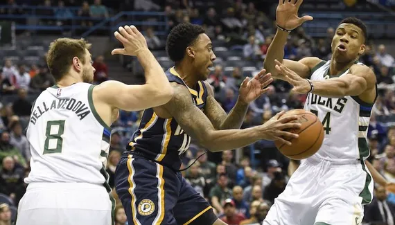 Titularisé par Jason Kidd, qui doit faire sans Mirza Teletovic et Malcolm Brogdon (en plus de Jabari Parker et Michael Beasley), Thon Maker n'attend pas cinq minutes pour soulever la salle d'un poster dunk de concours. Au spectacle, Indiana répond par l'efficacité. Elle est redoutable et les Bucks se mangent un 14-3 pour débuter la rencontre. Avec 10 passes en premier quart-temps, les Pacers livrent une partition collective impressionnante.