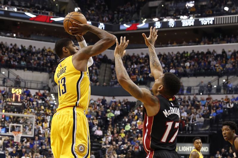 Lancés par Myles Turner, les locaux prennent 11 points d’avance en alignant un 17-2 dès la fin du premier acte (32-22). Paul George fait le spectacle, l’occasion de rappeler que Justise Winslow (épaule, out pour la saison) manque cruellement en défense face aux gros ailiers de la ligue. Car ni Babbitt ni McGruder ni Richardson ne parviennent à arrêter PG13. Par séquences, les intérieurs des Pacers parviennent à contrarier Whiteside à l’image du polyvalent Turner ou du hargneux Rakeem Christmas qui se voit récompensé de son investissement en arrachant une claquette dunk devant le pivot floridien avant la pause (60-53). Les troupes de Nate McMillan gardent ce petit écart en usant de leur défense, à l’image du contre de Myles Turner sur Richardson ou de la bâche monstrueuse de Glenn Robinson III sur Tyler Johnson en début de 4e quart-temps.