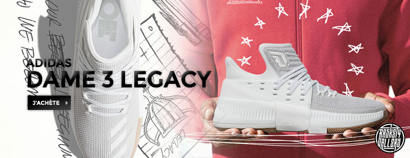 Commandez chez B4B la adidas Dame 3 Legacy hommage à la double carrière du meneur et dont le nom est tiré de l’un des titres de son dernier album.