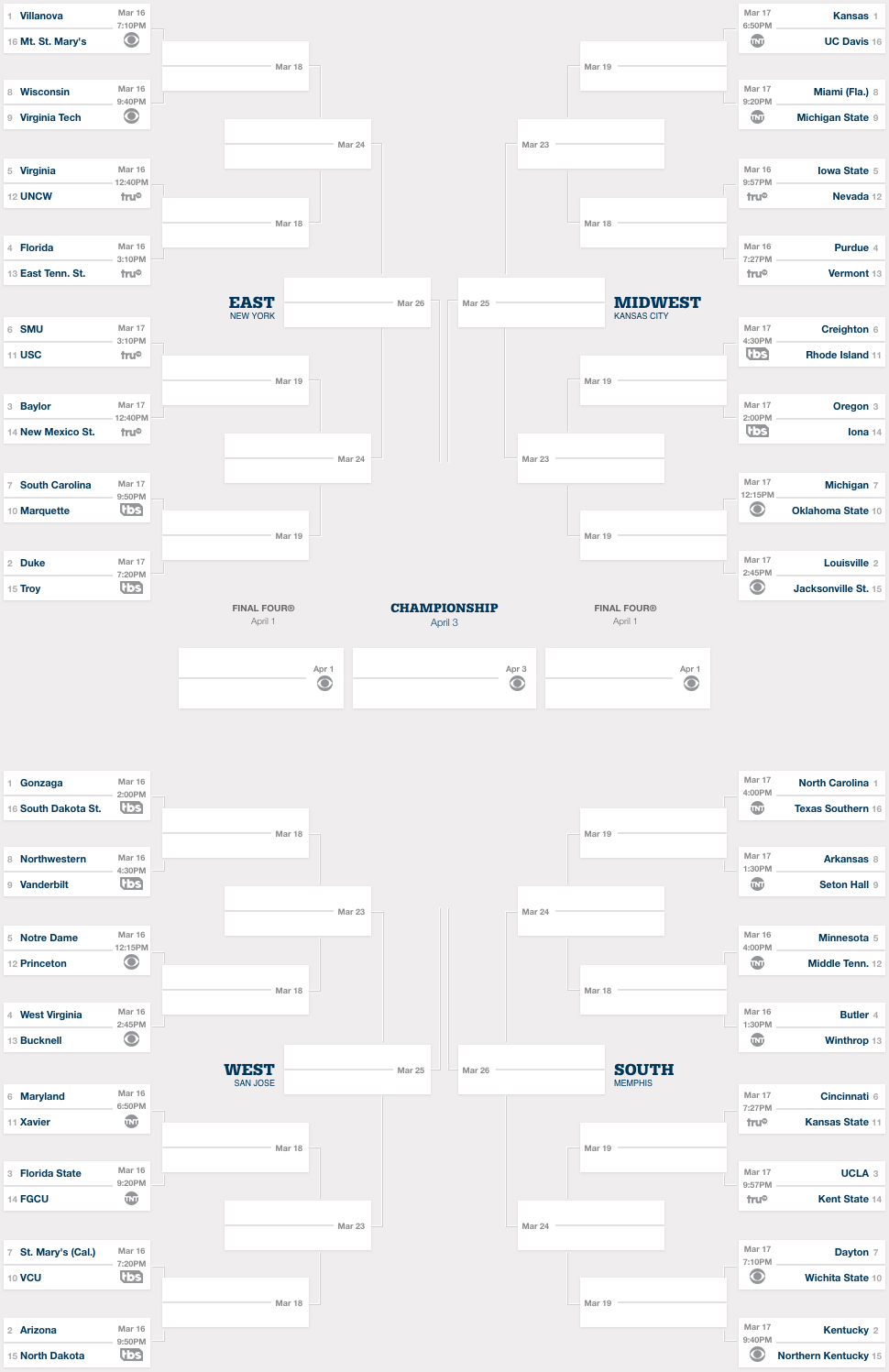 – 17 mars : match du 1er tour à 17h15 (FGCU-Florida State)