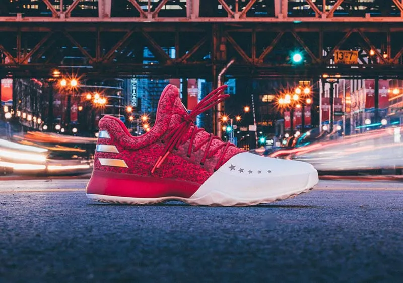Le rouge sera évidemment à l'honneur, puisque le roi du burger est impliqué. Sur la Harden Vol.1, la partie avant reste blanche, avec quelques étoiles. Le motif chiné sur le cou-de-pied accueille trois bandes dorées.