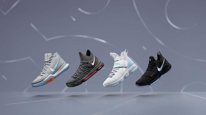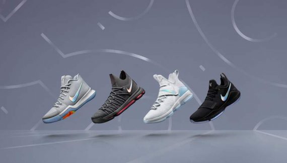 Toutes les nuances de gris y passent. Du blanc de la LeBron jusqu’au noir total de la PG1. Le petit détail qui fait la différence, c’est la présence d’une virgule iridescente sur chaque paire.