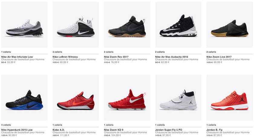 Du 30 mars au 9 avril, Nike propose un code promo pour bénéficier d’une réduction de 20% supplémentaires sur ses soldes de printemps sur le Nike Store. C’est la fin des soldes, et on a compté 13 modèles de chaussures concernées dont la Kobe A.D, la KD 9, la LeBron Witness ou encore la Rev 2017.