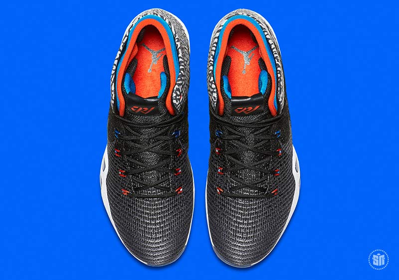 Officiellement présentée comme une Air Jordan 31, elle reprend les couleurs d’Oklahoma City. Le “Why Not ?” lié à Westbrook depuis plusieurs années apparaît sous les semelles, et l’imprimé éléphant recouvre le talon. Le tarif de cette sortie n’a pas encore été annoncé.