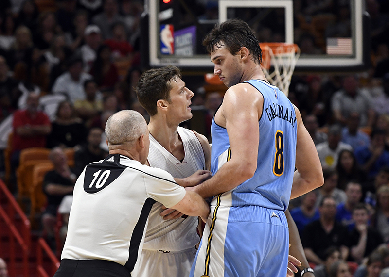 Mais le Heat se rebelle au retour des vestiaires, par un 15-4 en 3e quart qui continue d’artiller de loin. Josh Richardson (4/6) et Tyler Johnson (3/3) sont particulièrement en vue derrière l’arc. Mais Gallinari a du répondant. L’international transalpin inscrit 13 points sur la période et se prend gentiment le bec avec son voisin slovène, Goran Dragic. Avec l’aide de son banc, et notamment du revenant Emmanuel Mudiay (17 points, 9 passes), Denver fait encore la course en tête mais le Heat est plus que jamais en embuscade (93-87).