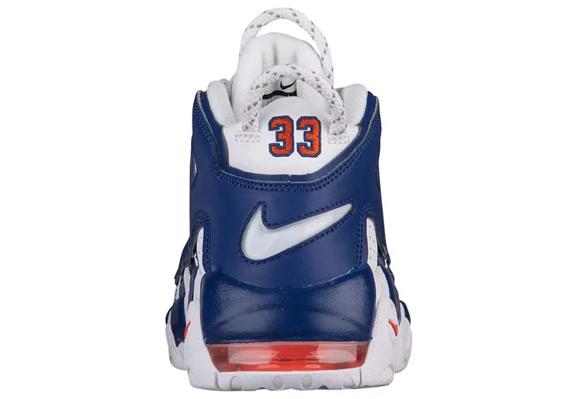 Mais la surprise, c'est la préparation d'un coloris “Knicks”, avec le bleu et le orange de la franchise de la Big Apple. Une chaussure dont la date de sortie n'a pas encore été officialisée, mais dont la vue risque de provoquer l'agacement chez certains supporters. Le numéro 33 au talon est à la fois celui de Pippen… et de Patrick Ewing.