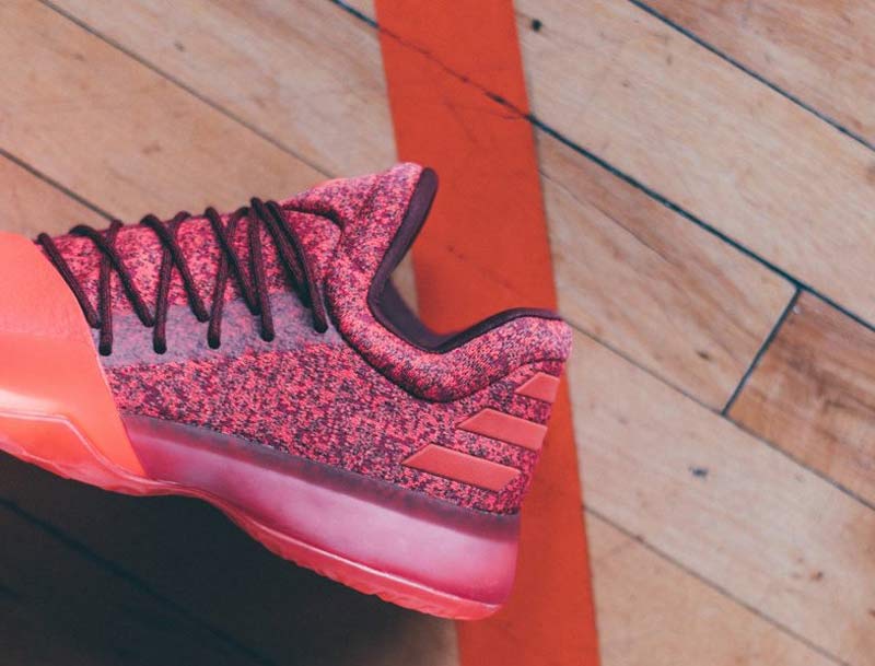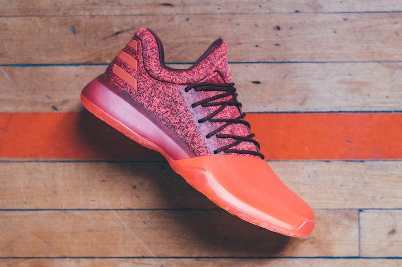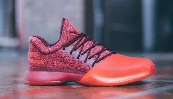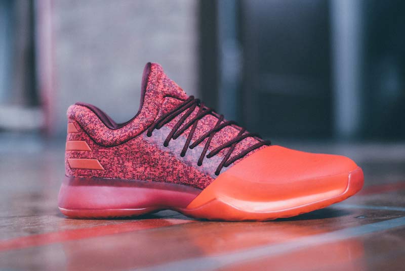 Sur ce nouveau coloris de la chaussure signature de James Harden, on retrouve trois teintes de rouge. Très vif à l’avant du pied, beaucoup plus sombre sur la partie arrière et les lacets.